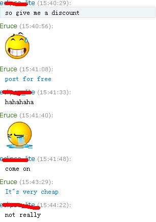 他.他..他...还让我优惠,已经做包邮的活动了,再加上不知道怎么沟通,于是乎我很被动