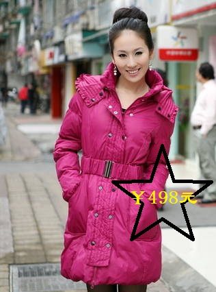 时尚长款加厚羽绒服外套 帽可脱卸 玫红 灰色