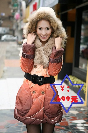 时尚洋气不跑毛懒兔毛领领 长款羽绒服