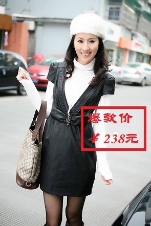皮背心 兔毛领 蝴蝶结 无袖背心连衣裙