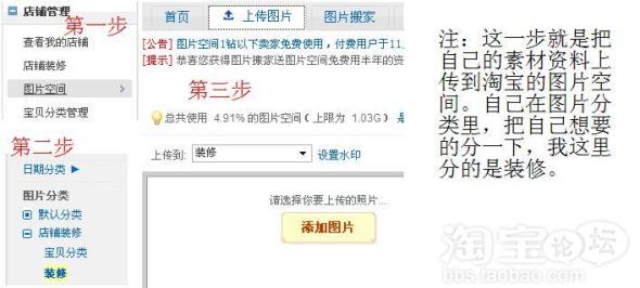 第一步:首先,我们准备好我们想要的网铺素材资料。然后放到网络空间,或直接用自己淘宝网店的图片空间也可以。为了方便。我用的是自己淘宝网店装修的素材。