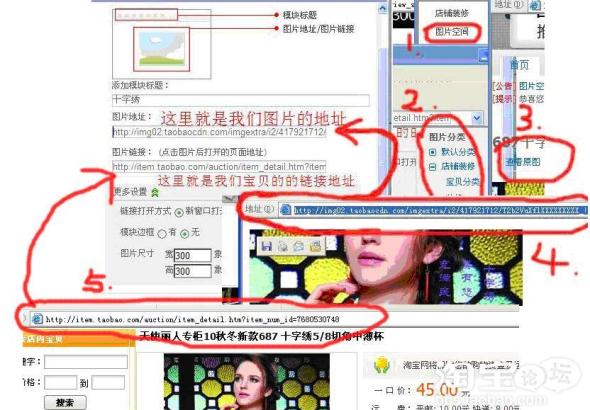 “图片地址”我们加入自己在网络空间或我们刚刚上传到淘宝图片空间的图片连接。