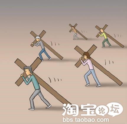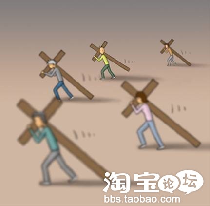 个人都背负着一个沉重的十字架,在缓慢而艰难地前行!