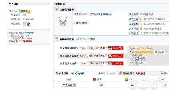 2007-08-25 第一次接触并认识、注册淘宝,反正玩电脑也是玩,挂个淘宝也是玩.淘宝店名字是我当时随便起的,有时间、有兴趣就开一段,忙起来就关闭,陆陆续续的就这样做着,那个时候淘宝比较好做,只要随便拍个图片,价格OK就能卖出东西,工作实在太忙,淘宝店根本无心打理,也根本没把它当回事,服务也没有到位,中评、差评也弄了不少……