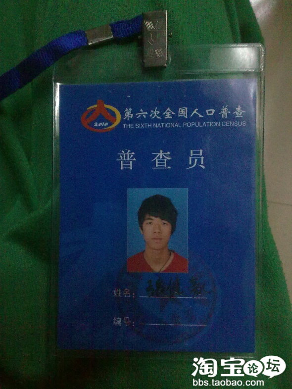 小弟第一次发帖,各位前辈请多多指教,(一直都在淘宝论坛潜水......) 先自我介绍哦 姓名:张健豪(一名在校的大2普通学生) 花名:牛奶仔(家里卖牛奶的,身边的朋友都这样叫,“粤语的花名”) 年龄:20岁....(1990年出生的,搭上90后这个名字) 爱好:淘宝逛街跟论坛看帖,打篮球,打魔兽DOTA,经营我的淘宝小店今年8月27号开学,我们的物业专业就需要去实习,我才大2的哇,感觉这么早就实习,不爽啊,虽然只是实习两个月,呵呵。大概到了10月份上旬,我实习的那个小区接到人口普查的任务,我跟我们班的另外三位同学有幸成为加普查员(在这感谢刘主任对我们的信赖),代表我们的公司去参加人口普查的培训。