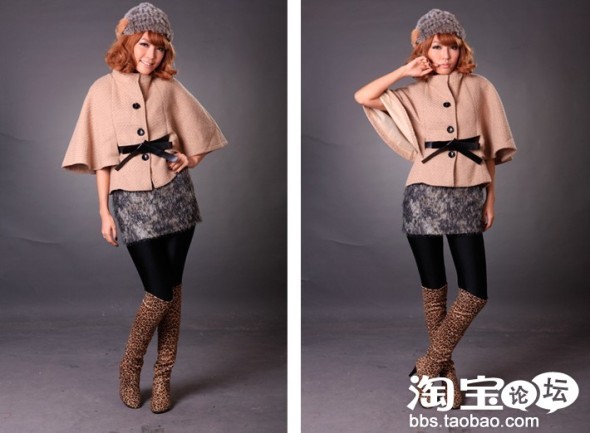 促销特价 2010秋冬新款韩版蝙蝠袖斗蓬式编织毛呢外套654配腰带
