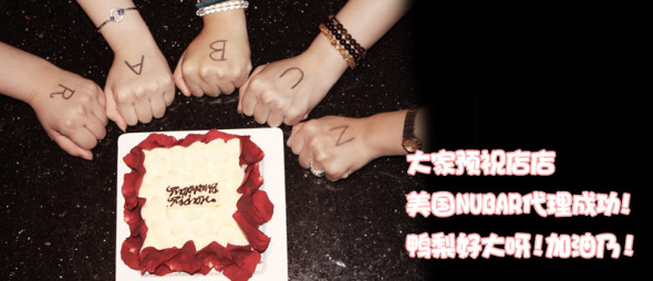 慢着慢着,还没完哦!~还有可庆祝的第二件事情,店店一直在美国进货的供应商在生日那天一起来为店店唱生日歌,并且谈下了美国NUBAR产品代理的事情,是不是三喜临门啊?