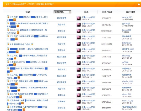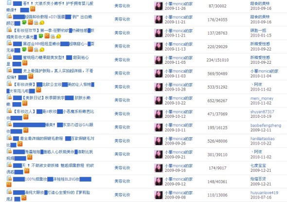发了很多化妆贴护肤贴和经验分享帖