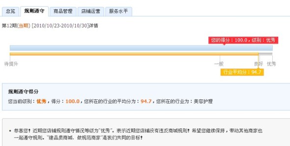 我们也要做淘宝上的守法公民 我们店铺是一百分哦 级别优秀