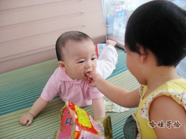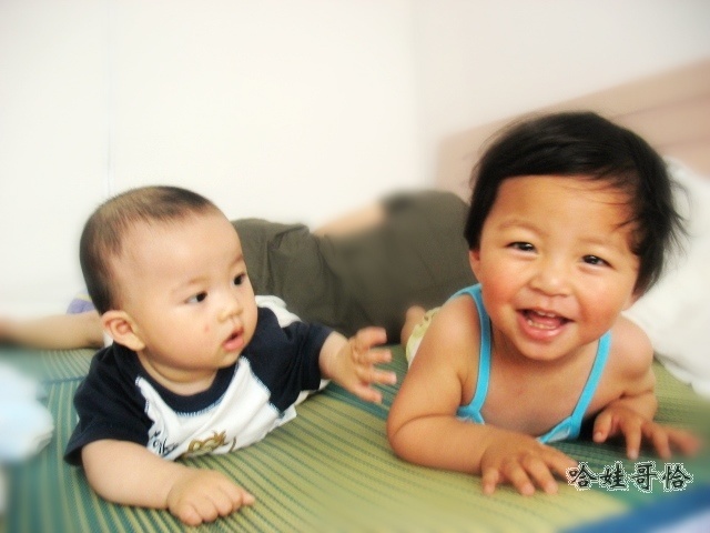 姐弟俩.老大23个月,老二8个月.老大通身的黑,老二却是白的发亮.凑在一起,实在逗趣.某天,我一只手抱着小的,一只手牵着大的,从卧室往客厅走.....几步路,脑子里休呼闪过一个梦境,几乎是一样的情形啊.当时醒来回想的时候我还吓了一大跳,天哪,我不会真的那么能生吧?抱着一个,牵着一个,肚子里还怀着一个??此时看来,我是把这姐弟俩当成自己的孩子了哇.他们是我第一次感觉如此亲近的宝宝.也是啊,姑妈也是半个妈呢,我们的身体里就有着一部分相同的血液.亲爱的宝贝,爱你们!