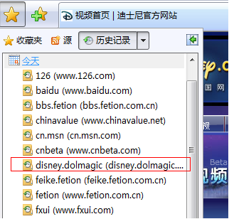 哎~现在的小孩子真牛呀,5岁就这么有心计,能自己制造机会上网看动画。让我比较放心的是,根据历史记录看,瑞瑞只看了迪士尼视频频道(http://disney.dolmagic.cn/video/?sr=d_hour)(估计再怎么牛,5岁的孩子也不会删除历史记录吧)。