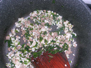 先把牛肉也剁碎用盐酱油腌10分钟 宝宝越小剁得越碎