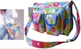 1. 背带。采用高档面料,比第一代更舒适,可以卸下,也可随时换上,可斜背或挎背。可以自由调节松紧度。同时附配一个高档加长红色垫肩,可以减轻肩膀承受压力,更加时尚舒适。2. 隔尿垫。采用高档黑色600D面料+珍珠棉+防水面料,比海绵弹性更持久,换尿片的时候使用。3. 保温袋。 使用高档保温材料,可以放置240ml标准奶瓶。4. 主袋。放置主要物品。5. 后袋。放置尿布垫和尿裤等。6. 网眼气袋。放置保温袋、奶瓶,同时有利于通风。7. 两个拉链袋。可以放置私人贵重物品,防湿。8. 两个前袋。可以放置玩具、食品等。9. 侧袋。可以将儿童湿巾或纸巾放在内。10.主袋内部两个口袋。