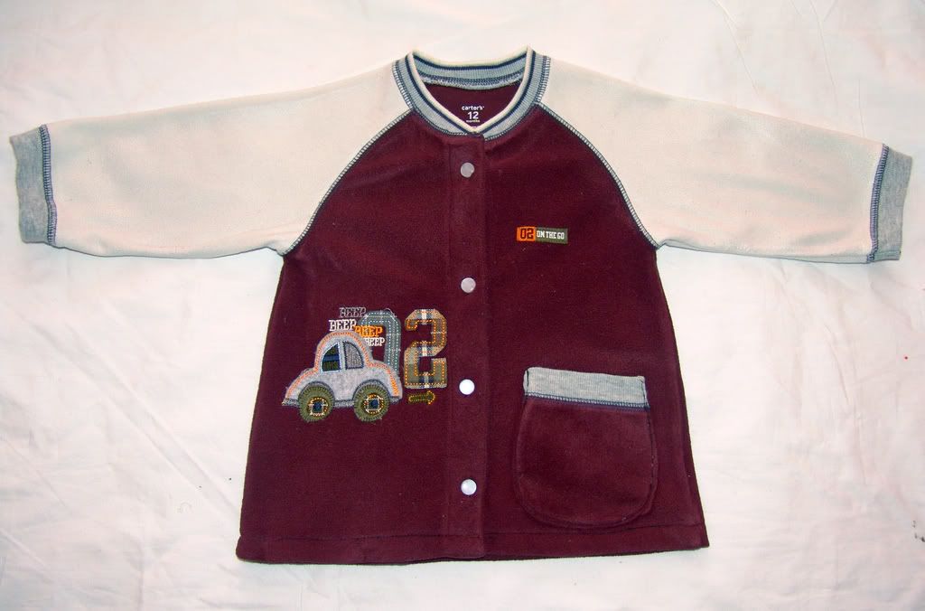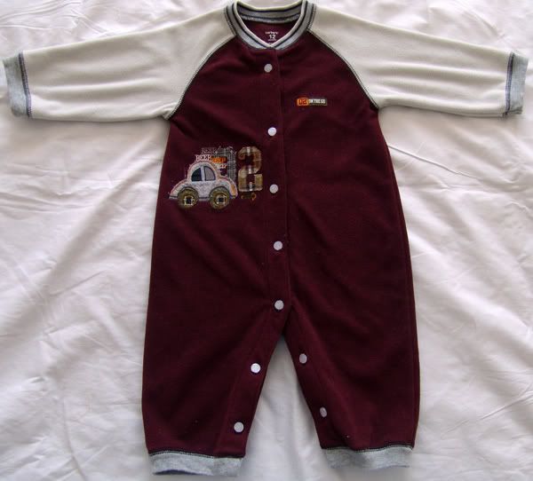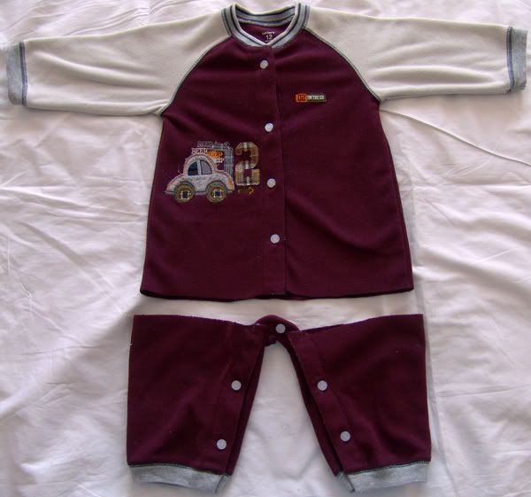 我最喜欢给儿子穿连身衣,而且觉得连身衣非常科学,让宝宝的肚子不受凉,还没有松紧带的束缚,在儿子一岁以内每个月都要买新的连身衣,不是衣服坏了还是旧了,而是小猪长的太快了上身基本都可以,但腿总是在短。现在儿子15个月了,个子有90cm,比同龄的孩子都高,连身衣基本都穿不了了,全部短好半截。好多都送人了,还有些真的好喜欢小猪穿上时的那个样子,就留了下来,有天整理小猪的衣服突发奇想,能不能利用下我特别喜欢的连身衣给小猪改点什么衣服呢!呵呵,就先拿了件carter的连身衣来下手啦~小猪穿这个很乖的样子呢:)