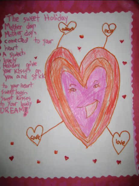 这是儿子给我的,放学去接他,他递上花,甜甜的 Happy Mother's Day!呵呵,花儿到妈妈脸上了.